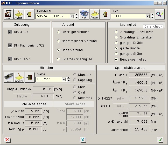 der Eingabe externer Spannglieder. Hierzu wurden in die programminterne Spanngliedbibliothek