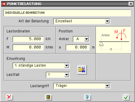 mit den Stababschnitten, den Stabknoten/Auflagern und den Einwirkungen
