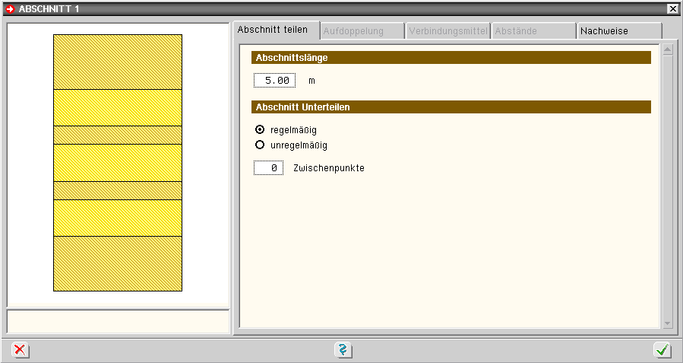 Maße der Teilquerschnitte und ggf. die Achsabstände der Träger in mm eingegeben. |