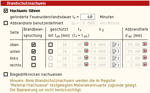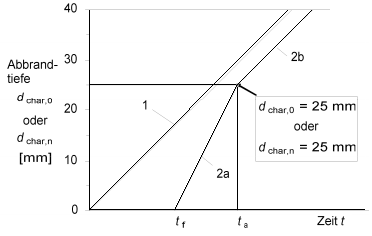 geschützter Bauteile nach Überschreiten der Abbrandtiefe dchar =