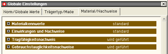 die Einstellungen für Gebrauchs- und Tragfähigkeitsnachweise