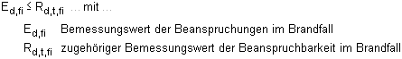 Der Bemessungswert der Beanspruchbarkeit im Brandfall Rd,t,fi darf