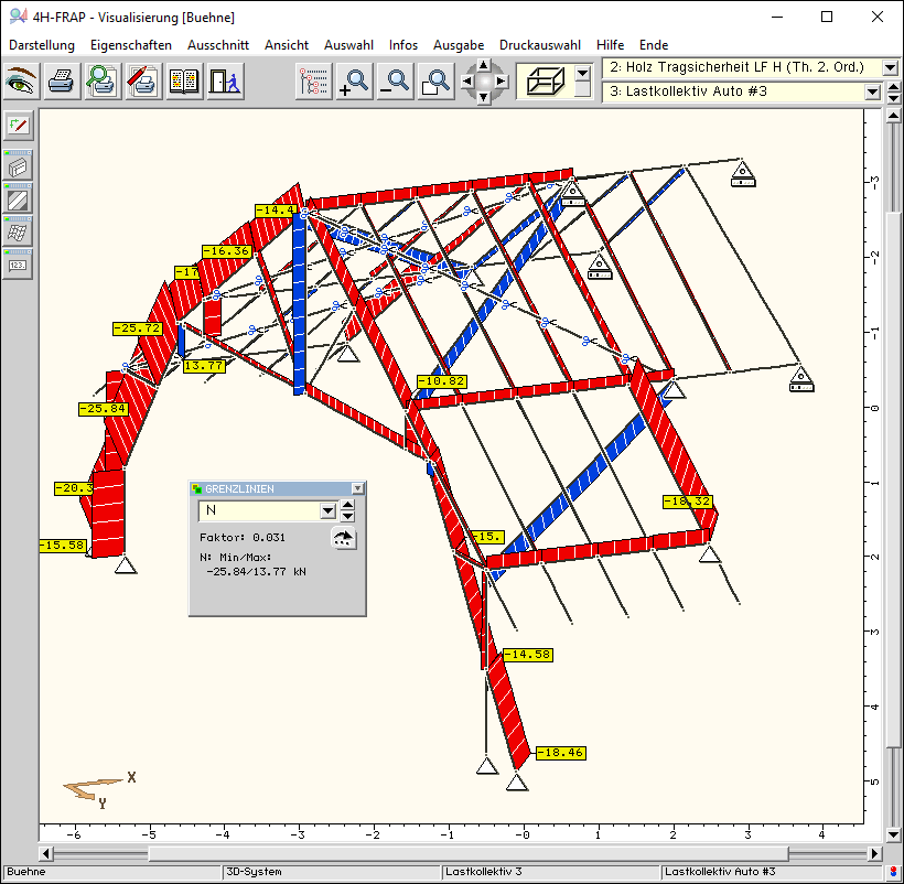 -FRAP, Räumliche Stabtragwerke, Visualisierung - Druck-/Zugstabausfall