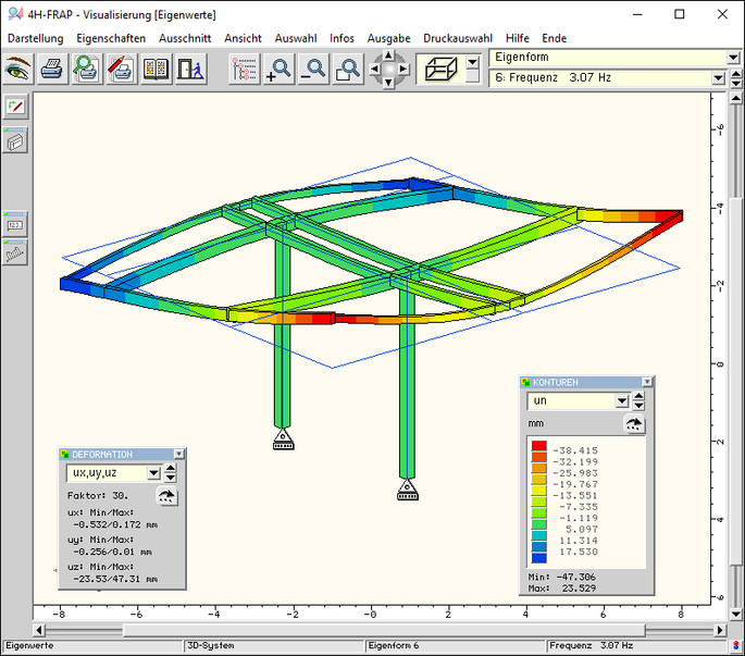 die Deformationsfiguren der Eigenformen liefern ein aussagekräftiges