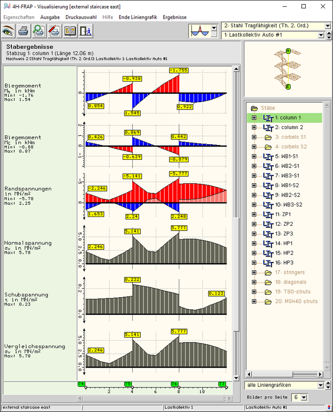 durch Doppelklicken der Stäbe mit der Maus wird auf die Liniengrafiken der Einzelstäbe