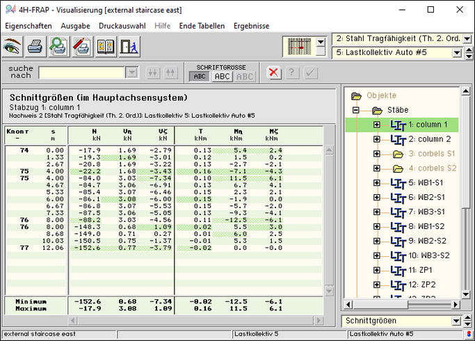 im Darstellungsfenster der Abbildung sind Schnittgrößen