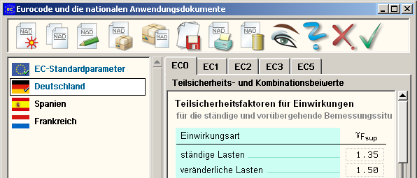 den NADs bestimmte Parameter, die in den Eurocodes als Empfehlungen