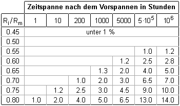 | Für die zulässigen Spannungen des Spannstahls macht die Norm