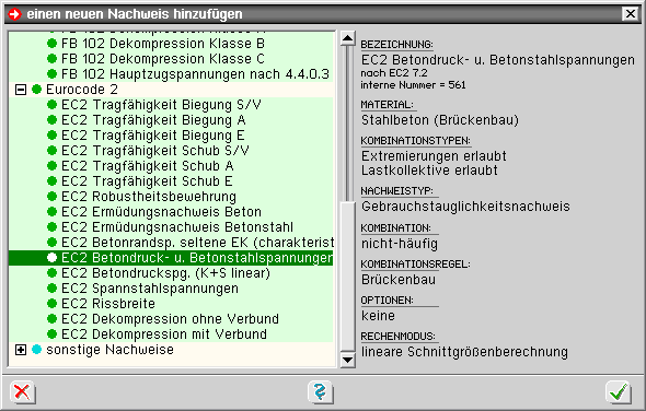 den Nachweis durchführen zu können, muss der Nachweis Betonrandspannungen unter seltener Einwirkungskombination eingerichtet werden, da dieser Nachweis notwendig ist um