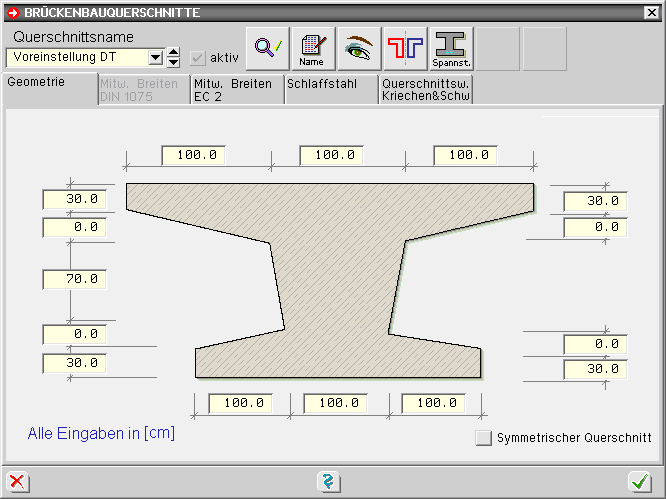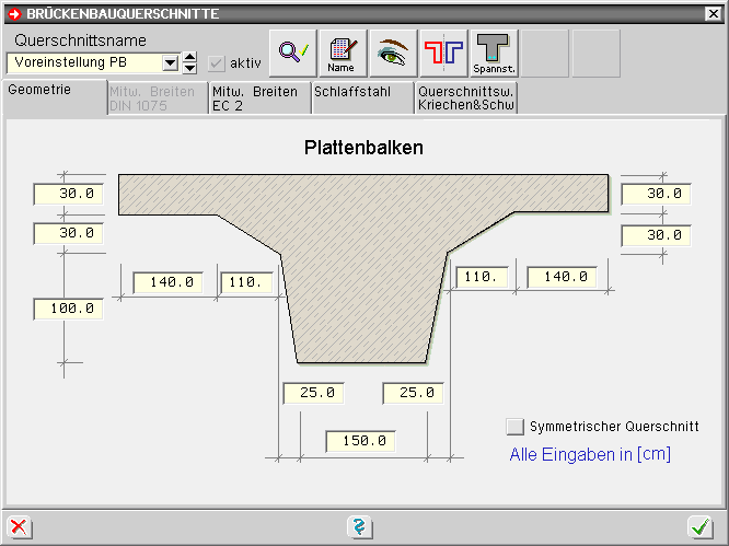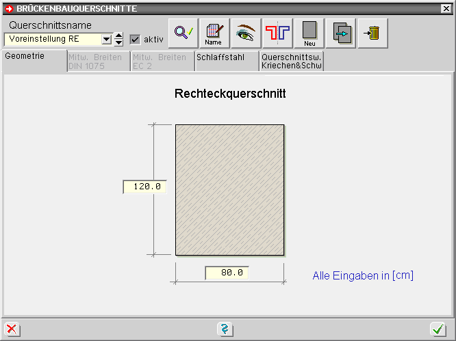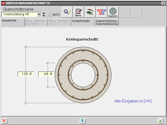 | Grundsätzlich ist die Eingabereihenfolge beliebig; vor der Eingabe der Schlaff- und Spannstahleinlagen muss