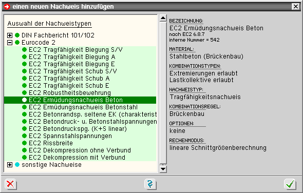 | Wahl des Nachweises im End- oder Bauzustand über den Optionsschalter |
