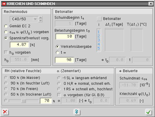 Die kriecherzeugenden Lasten werden automatisch vom Programm entspr. DIN EN 1992, 5.10.6, bzw.