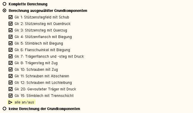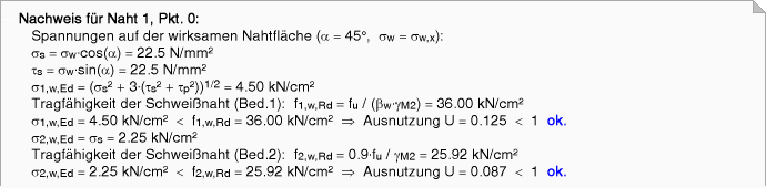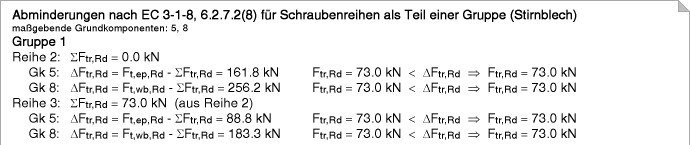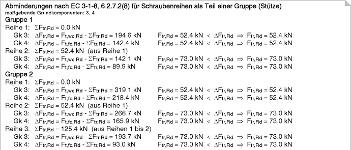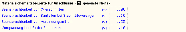 Bei reduzierter Eingabe werden die genormten Materialsicherheitsbeiwerte