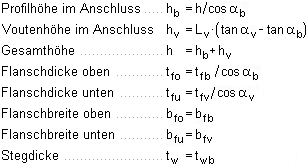 Stirnblechs oder Flanschwinkels folgende Bedingung
