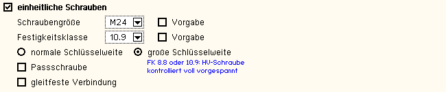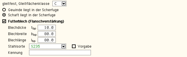 sind Schraubengröße, Festigkeitsklasse sowie ggf. Futterblechdicken