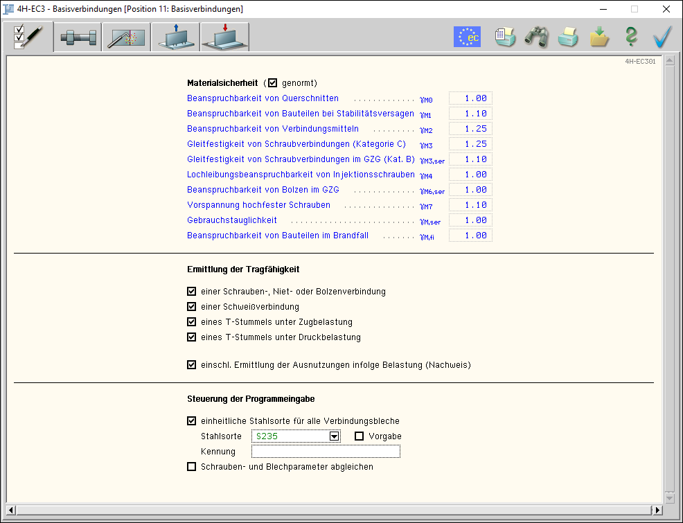 -EC3BV, Basisverbindungen, Eingabeoberfläche