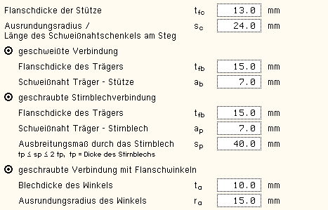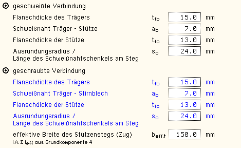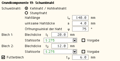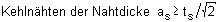 die Schweißnahtdicke (Kehlnaht, je Seite) am Druckflansch anzugeben.