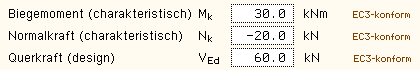 Trennschicht sind die einwirkenden Schnittgrößen (nur einachsig,