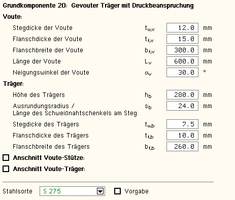 mit Voute), wobei der untere Trägerflansch vernachlässigt