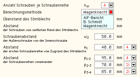 mit 2 oder 4 Schrauben je Reihe eingegeben werden. |
