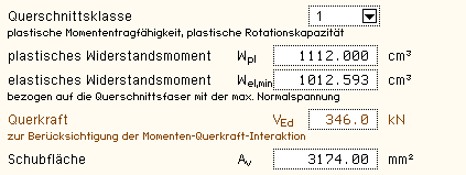 Scherfuge liegt, und daher die Querschnittswerte aus dem Spannungsquerschnitt