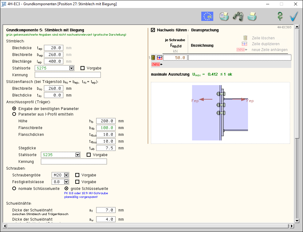 -EC3GK, Grundkomponenten, Eingabeoberfläche Stirnblech mit Biegung