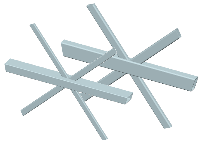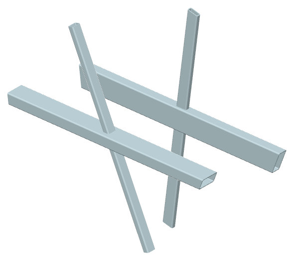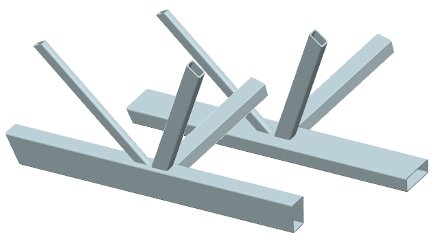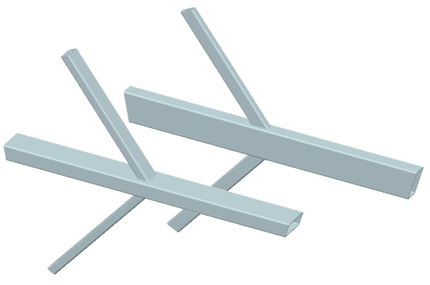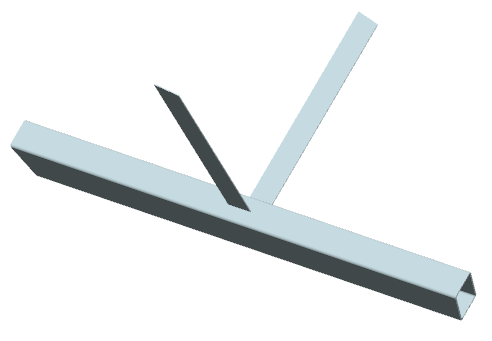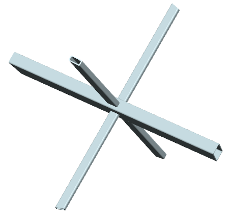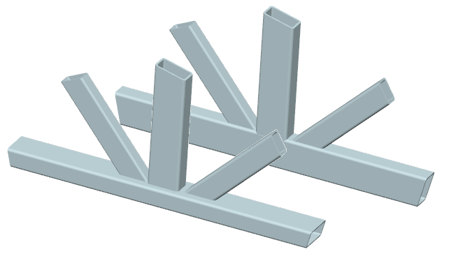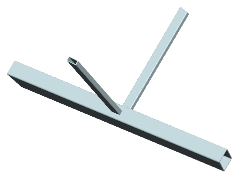 ... drei Streben mit (unterschiedlichen) Rechteckrohrquerschnitten werden unter drei (unterschiedlichen) Winkeln