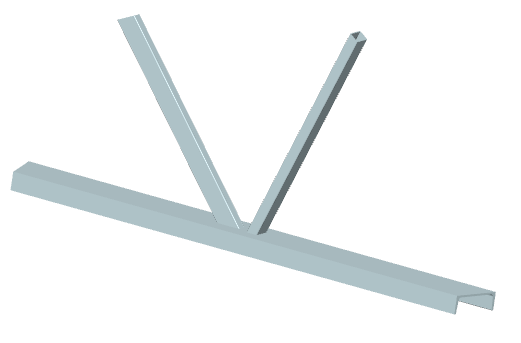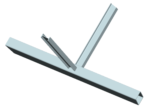 ... zwei Streben mit Blechquerschnitt werden rechtwinklig an einen Gurt mit Rechteckrohrquerschnitt angeschlossen |