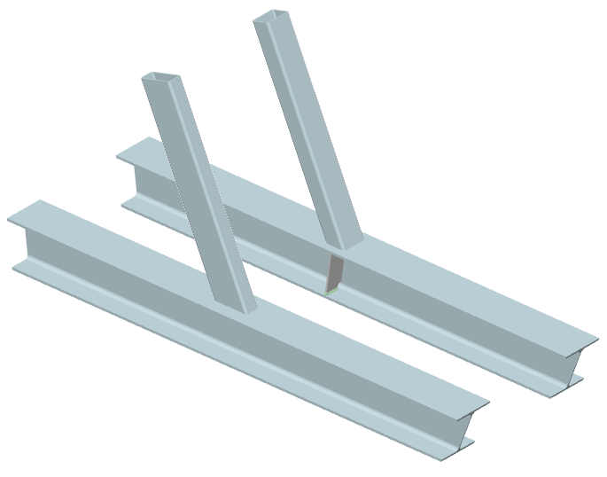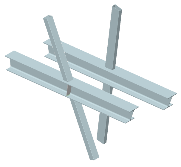 ... zwei Streben mit I-Querschnitt werden rechtwinklig an einen Gurt mit Rechteckrohrquerschnitt angeschlossen |