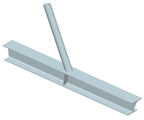 ... eine Strebe mit Kreisrohrquerschnitt wird rechtwinklig an einen Gurt mit I-Profil angeschlossen |