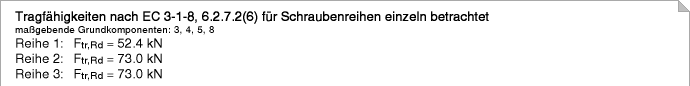 die die Tragfähigkeit einer Schraubenreihe