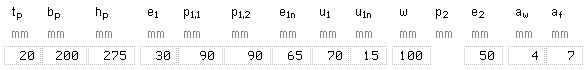 Außerdem werden die Abmessungen des Stirnblechs sowie die Schweißnahtdicken