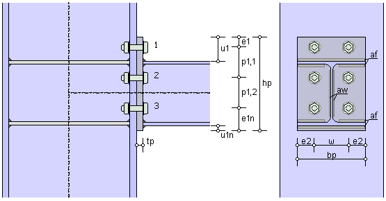 Stirnblech und Stütze bzw. bei Stößen zwischen den Stirnblechen)
