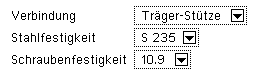(S 235 oder S 355) und die Schraubenfestigkeits-klasse
