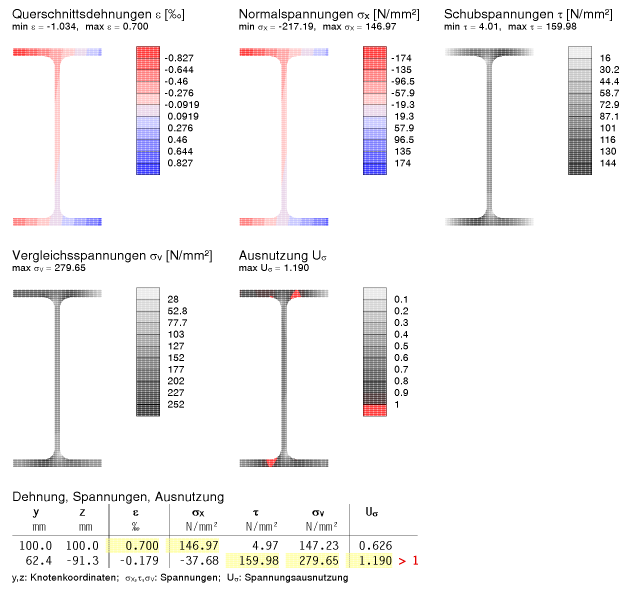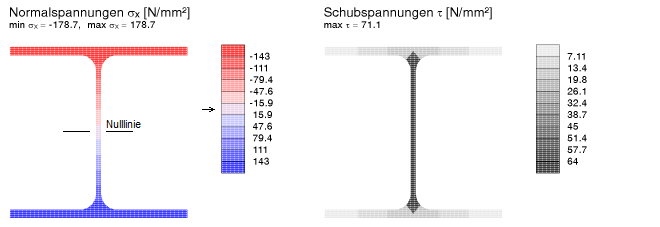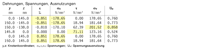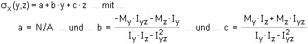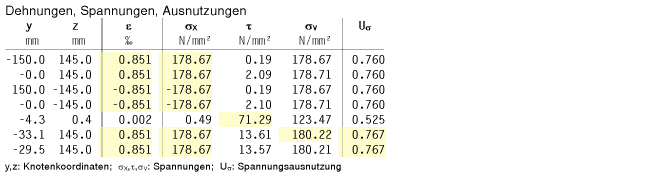 sind unter der gegebenen Lastkombination konstant bis zur Querschnittsachse