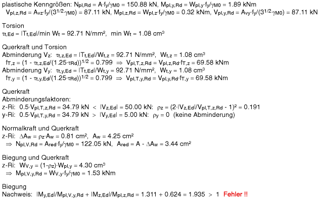 können nicht nachgewiesen werden. Wölbkrafttorsion ist ausgeschlossen. |