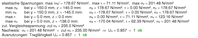 der plastische Spannungsnachweis (DIV) mit U = 0.93 gelingt. |