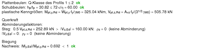 = 0.70, da nach Norm die Querkraft die Momententragfähigkeit
