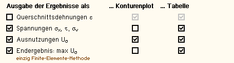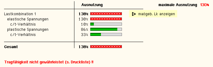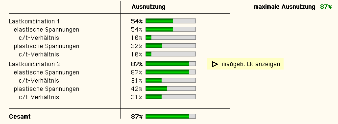 die Ergebnisse (Ausnutzungen) lastfallweise und