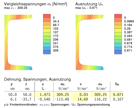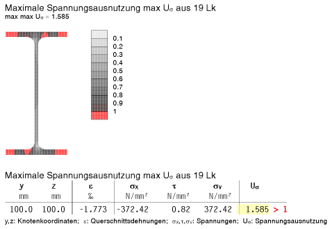 deutliche Spannungsüberschreitung (Ausnutzung U = 1.41 > 1), während