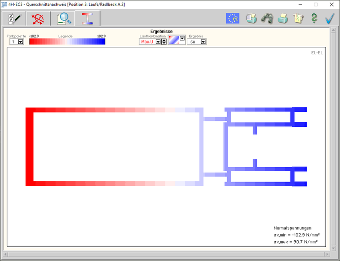 Der elastische Spannungsnachweis (FEM) zeigt eine