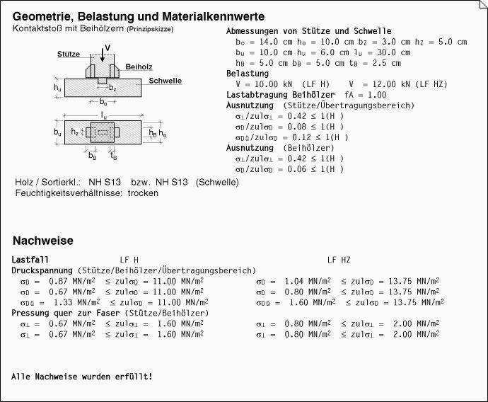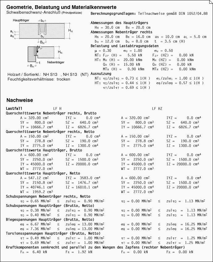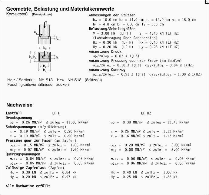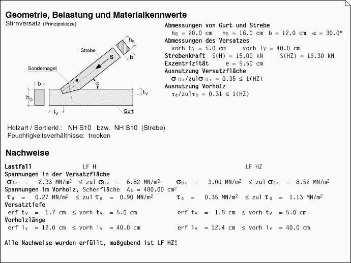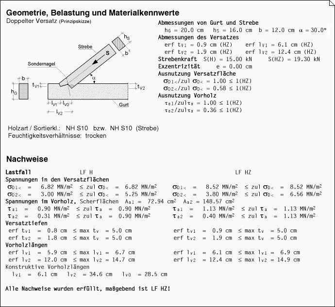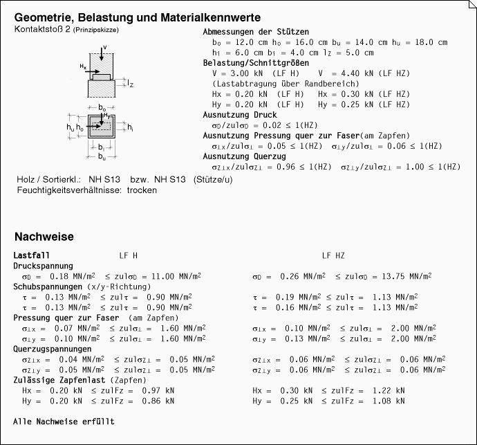 Ergebnisprotokoll des Statikdokuments. |