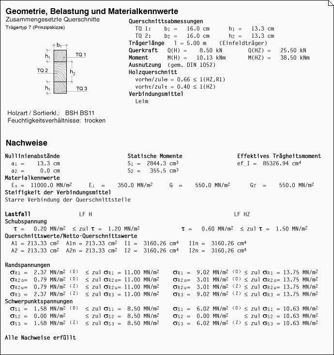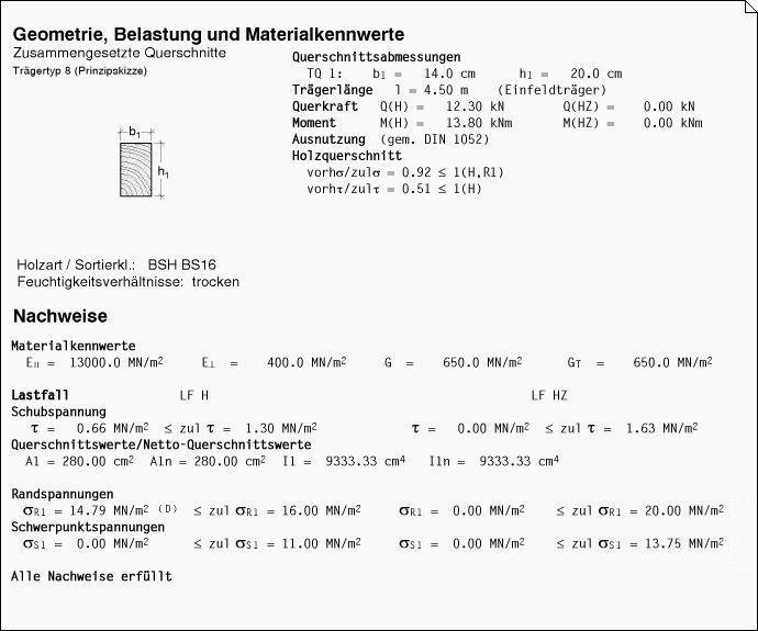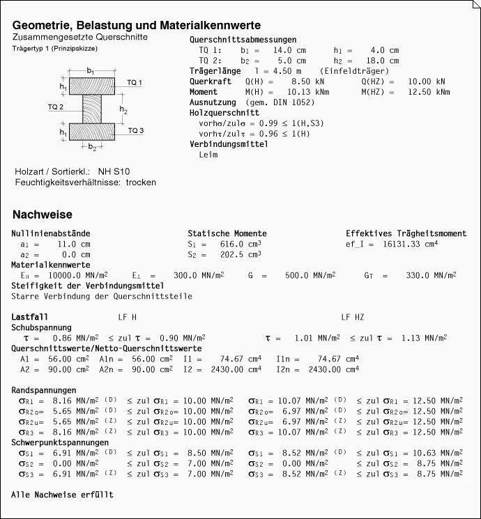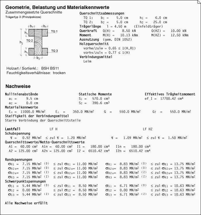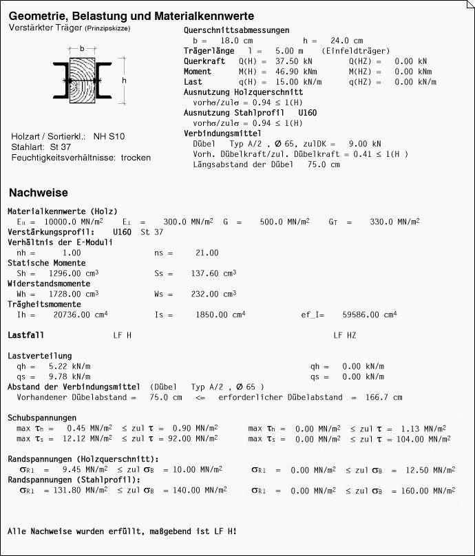 das Programm ermittelt damit die vorhandenen Beanspruchungen