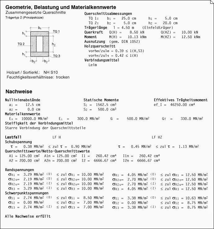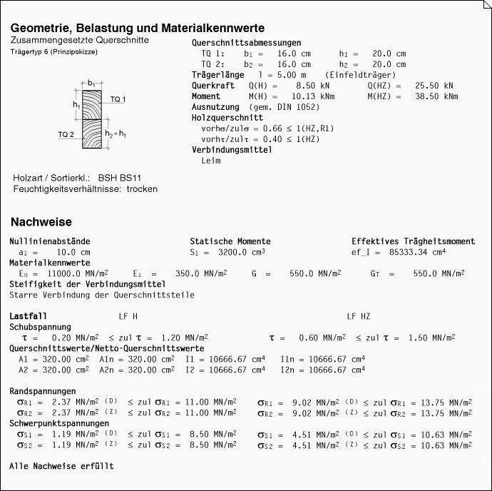 Ergebnisprotokoll des Statikdokuments. |