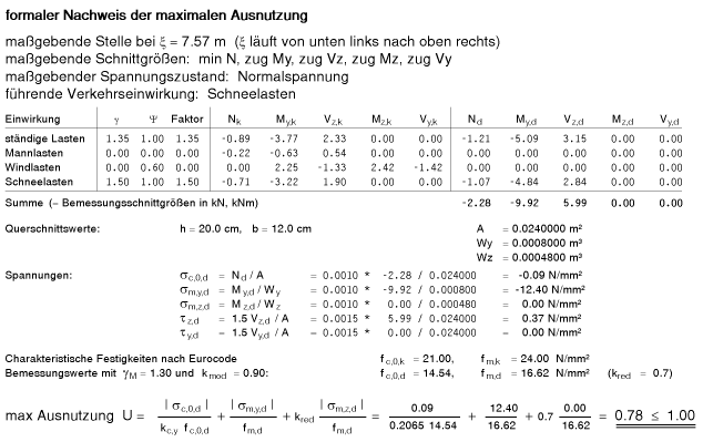 Einwirkungen und die Lastfallergebnisse im Einzelnen dargestellt