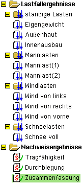 Während unter der Überschrift Lastfallergebnisse die Extremalen der definierten