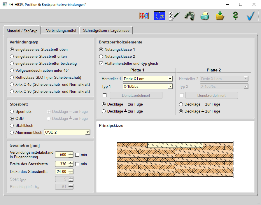 -HBSV, Brettsperrholzverbindungen, Eingabeoberfläche