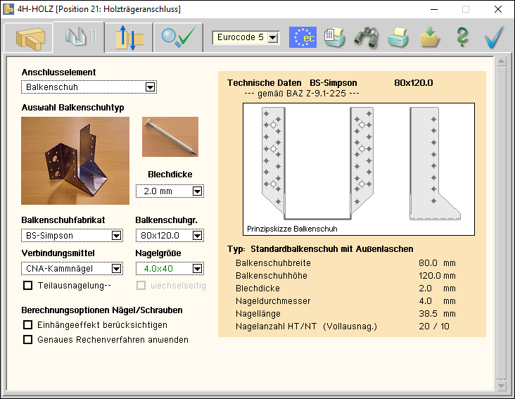 -HNHT, Holzträgeranschlüsse, Eingabeoberfläche Register 2 - Verbinder