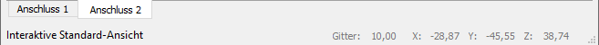 Durch Überfahren der Standardansicht mit der Maus können die in das Weltkoordinatensystem projizierten Koordinaten der Maus eingesehen werden. |