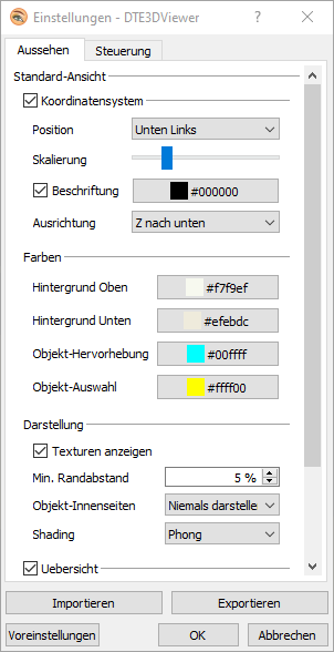 die innerhalb des DTE3D-Viewers genutzt oder konfiguriert werden können. |